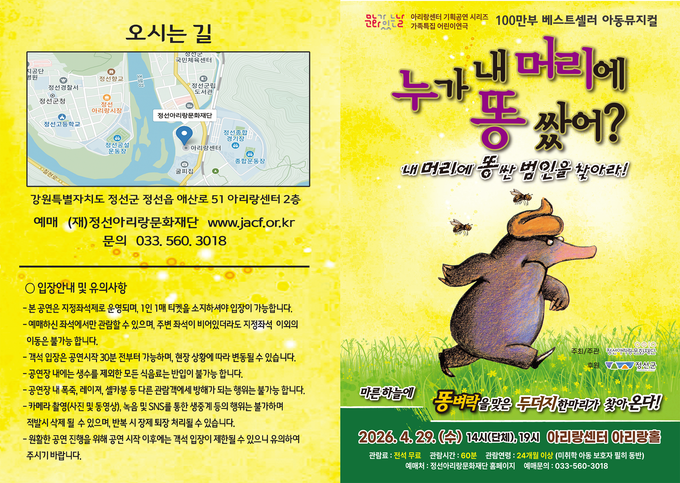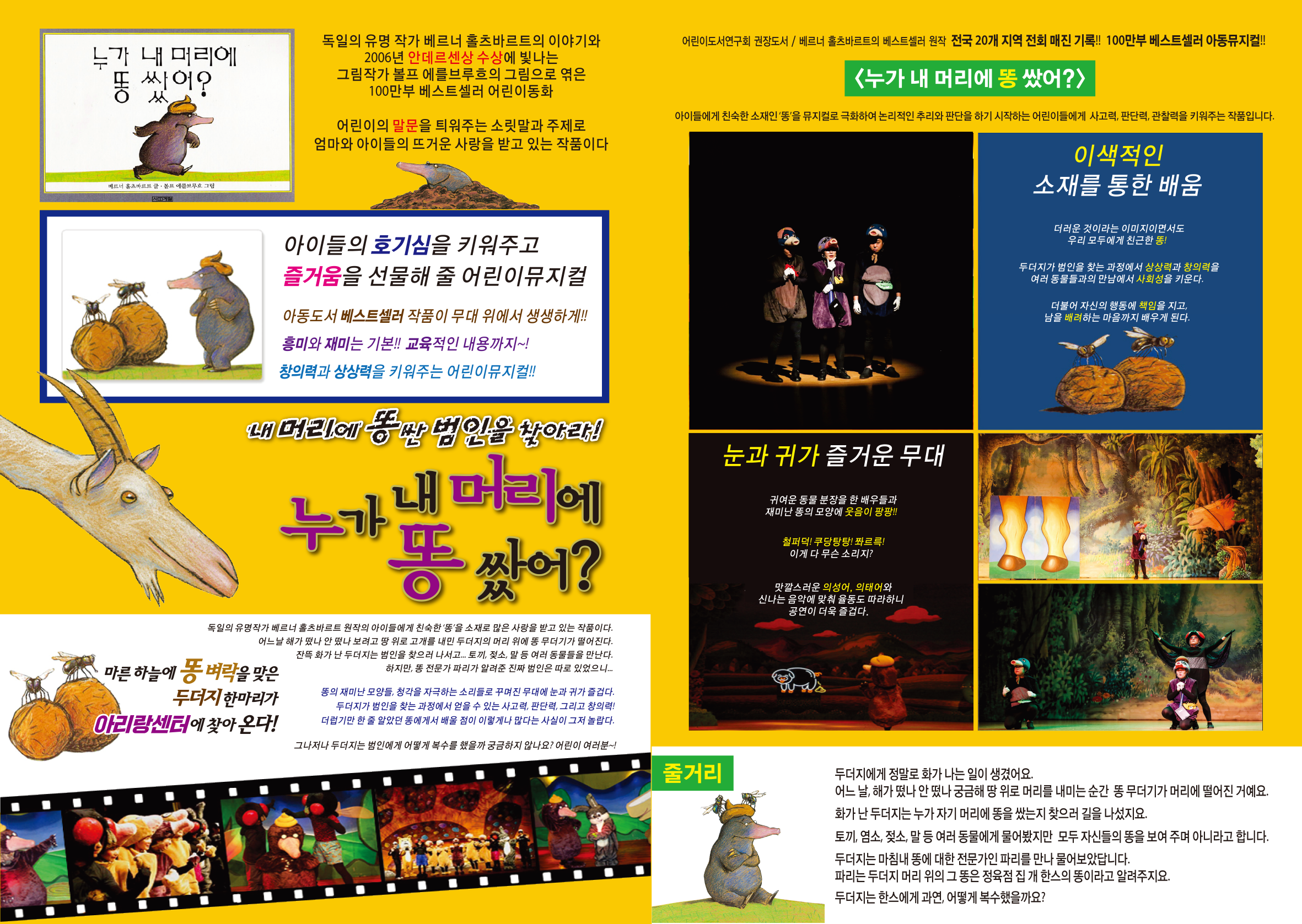 마지막주 수요일 문화가 있는 날 아리랑센터 기획공연 시리즈 가족특집 어린이 연극 누가 내머리에 똥 쌌어